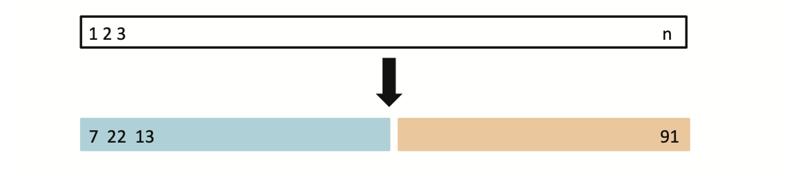 We randomly split the 30 observations into two sets: a [training set]]{.blue} with 15 data points and a [validation set]]{.orange} with the remaining 15 observations.