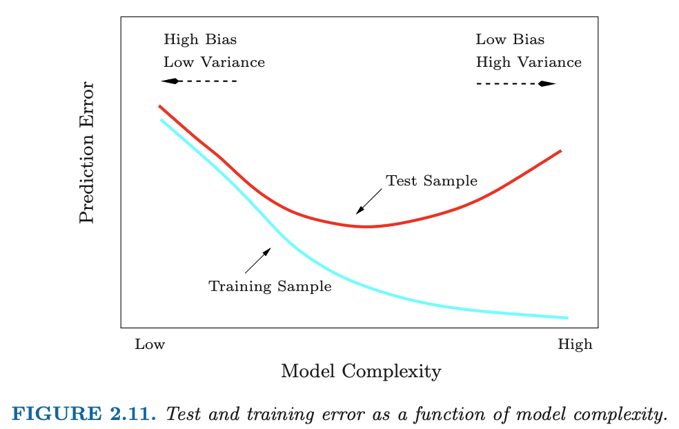 the prediction error can still be large if the model is highly variable.On the other hand, a model that predicts a constant has zero variance but high bias.