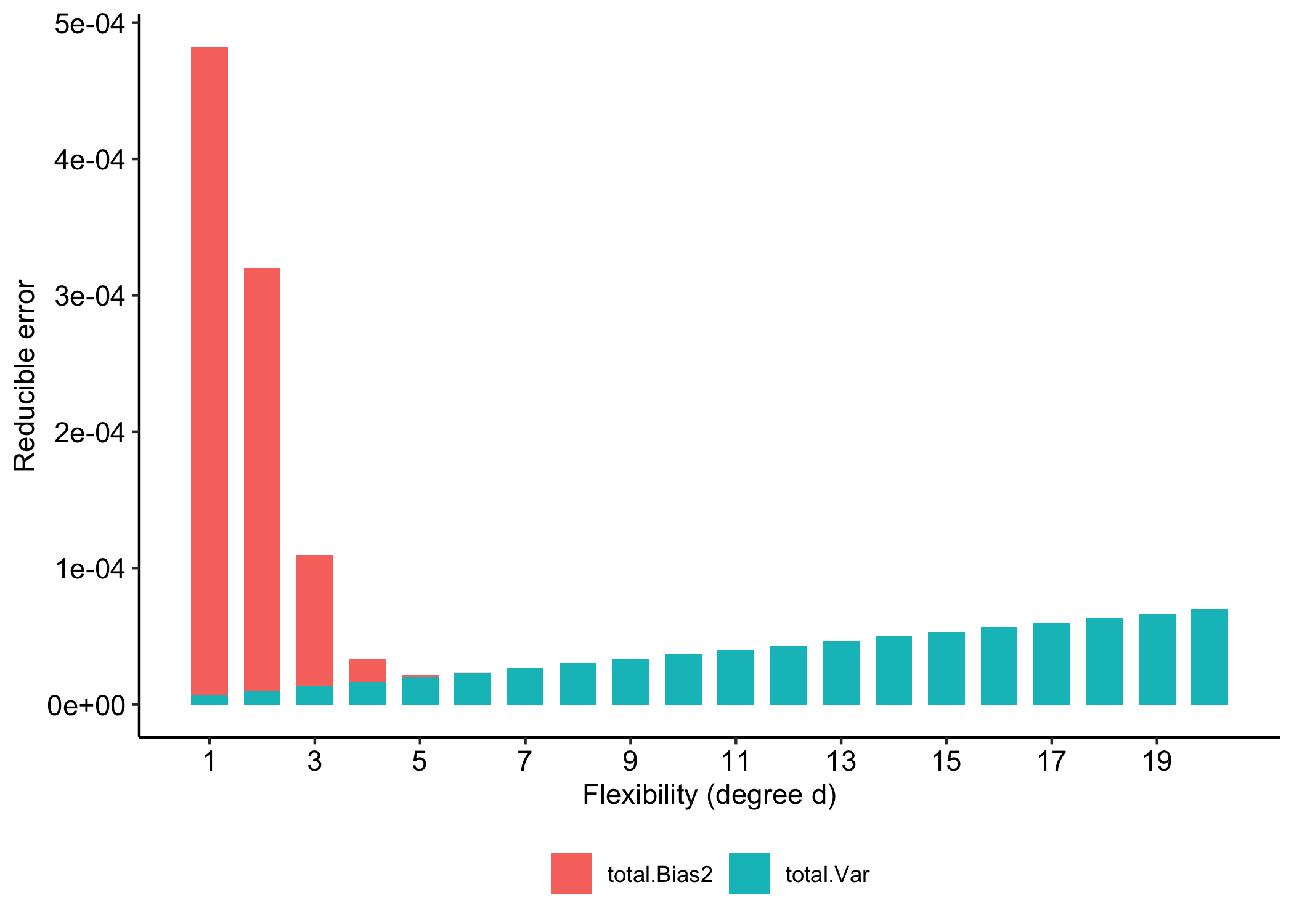 Typically as the flexibility of \hat f increases, its variance increases, and its bias decreases.
