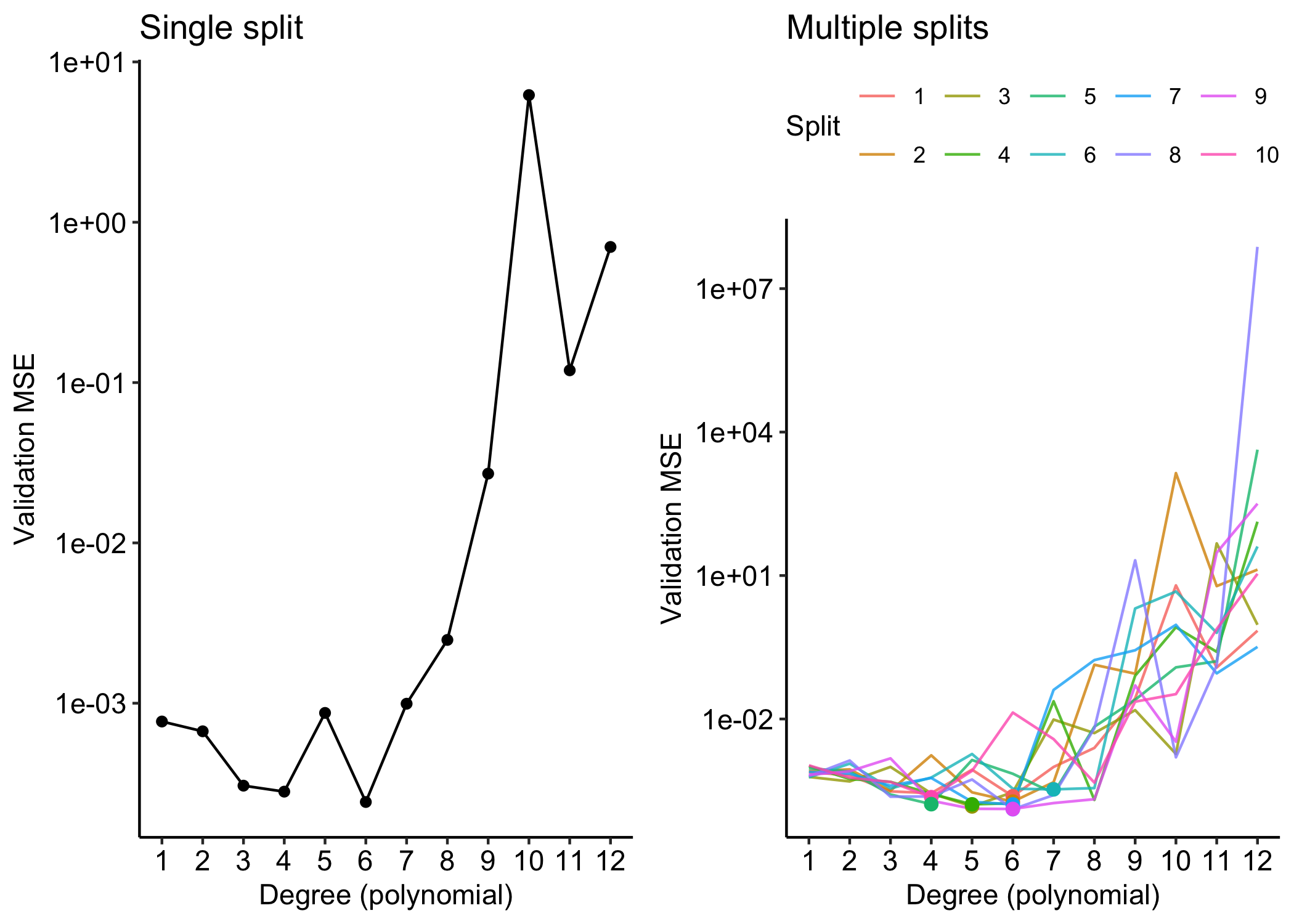 The validation estimate of the test error can be highly variable, depending on precisely which observations are included in the training set and which observations are included in the validation set.