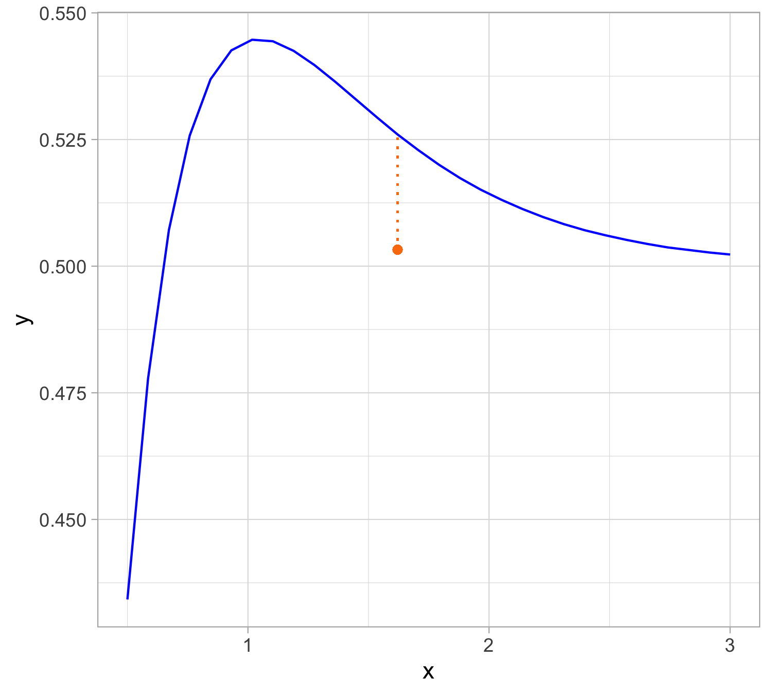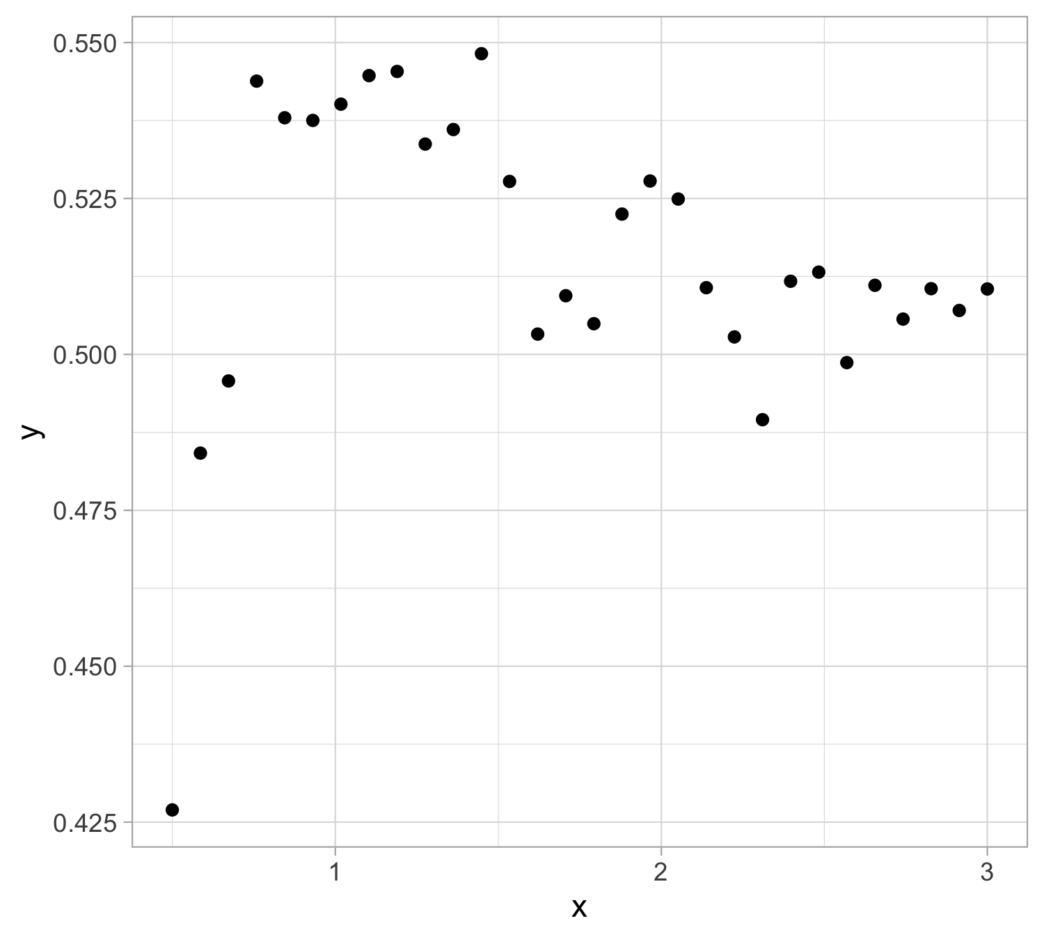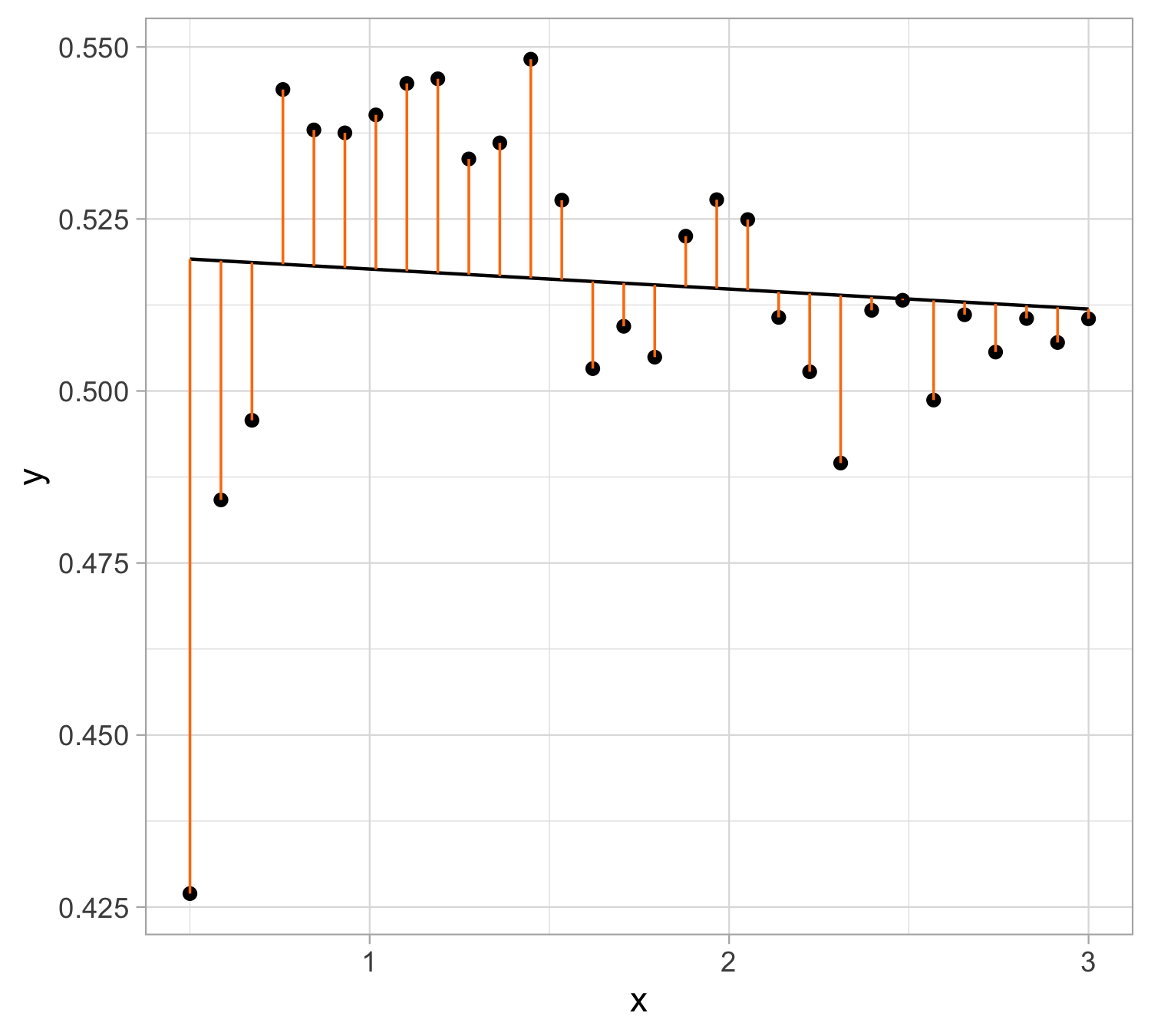 Least squares fit : \hat y = 0.520627 - 0.003 x