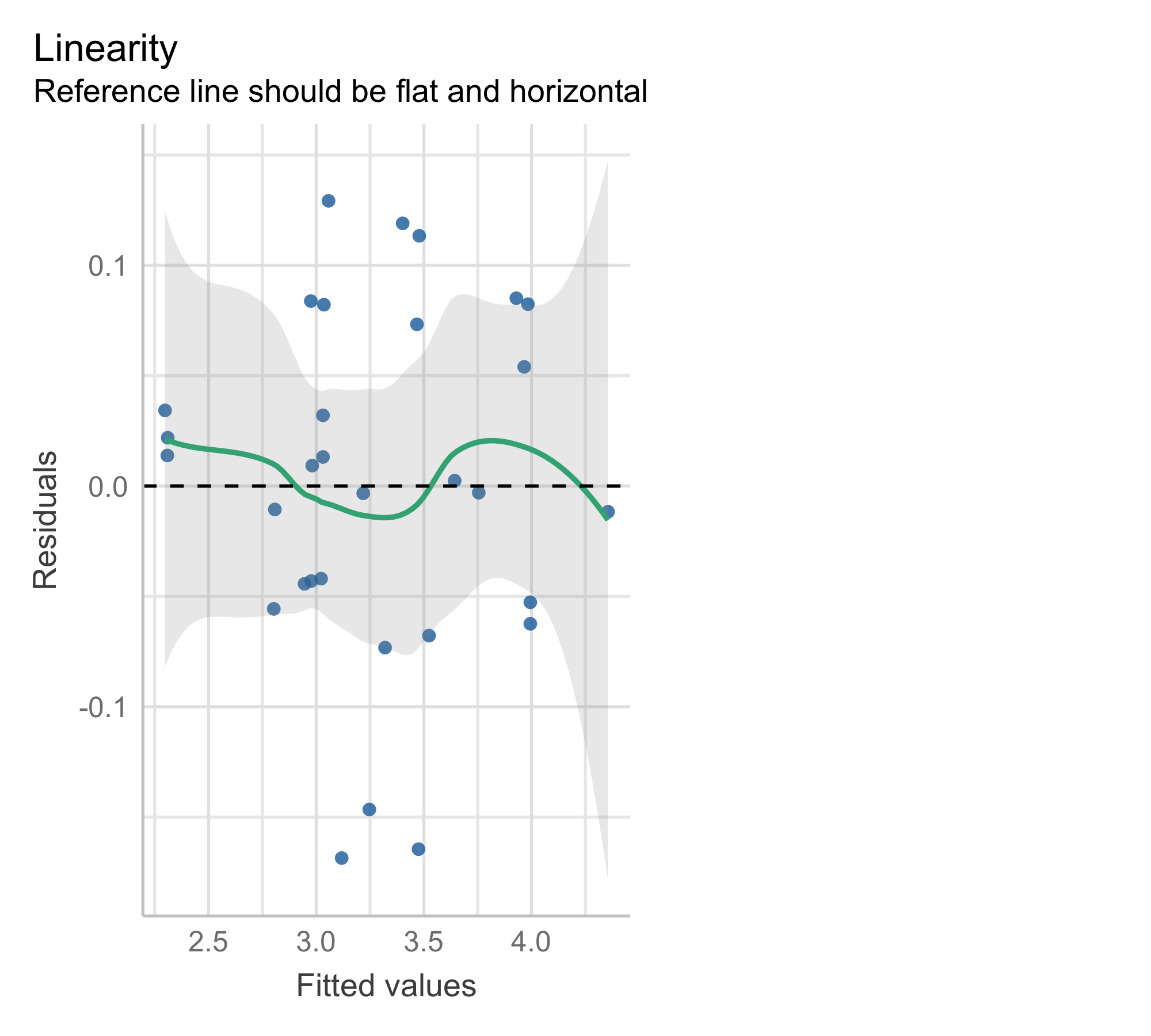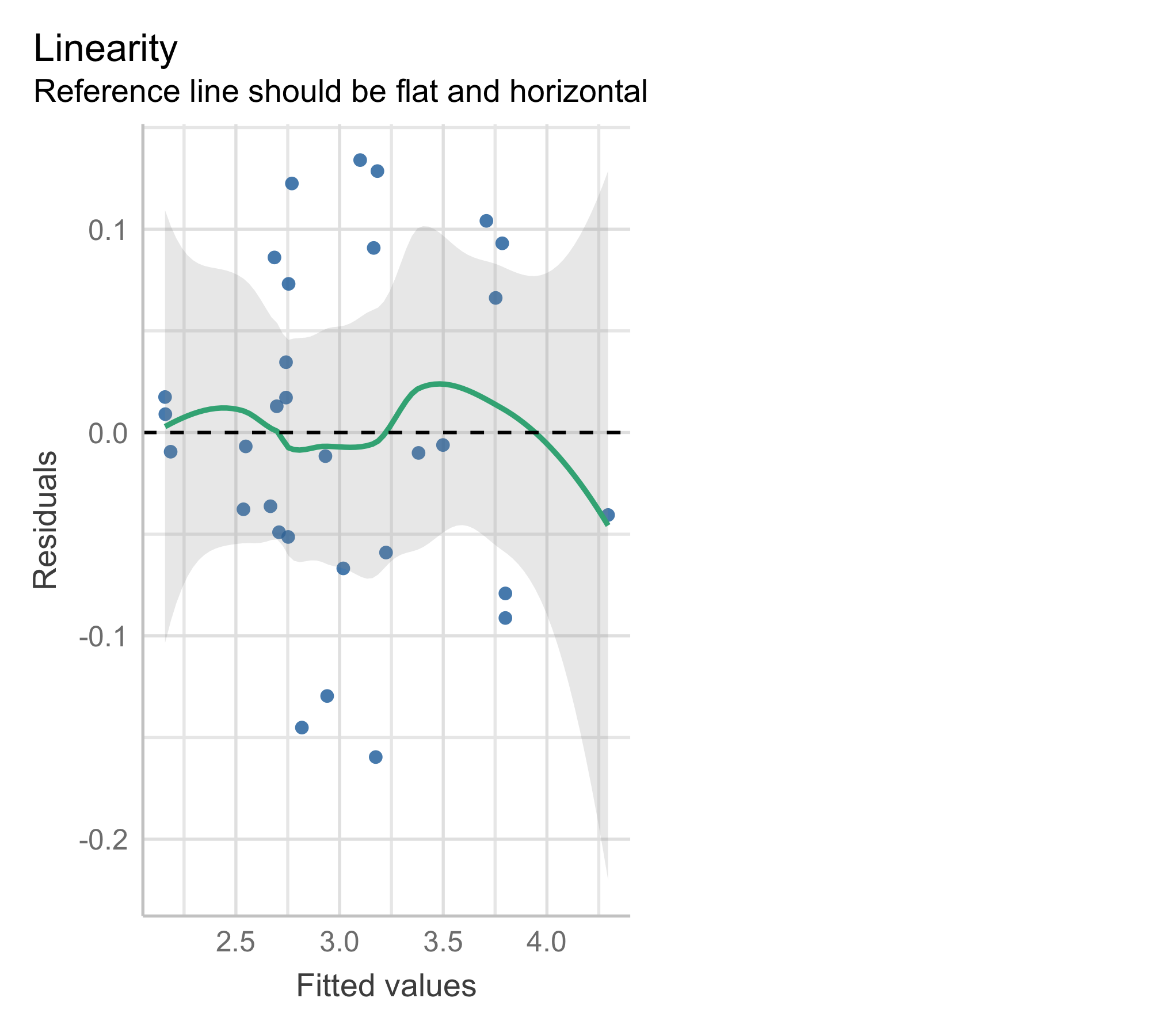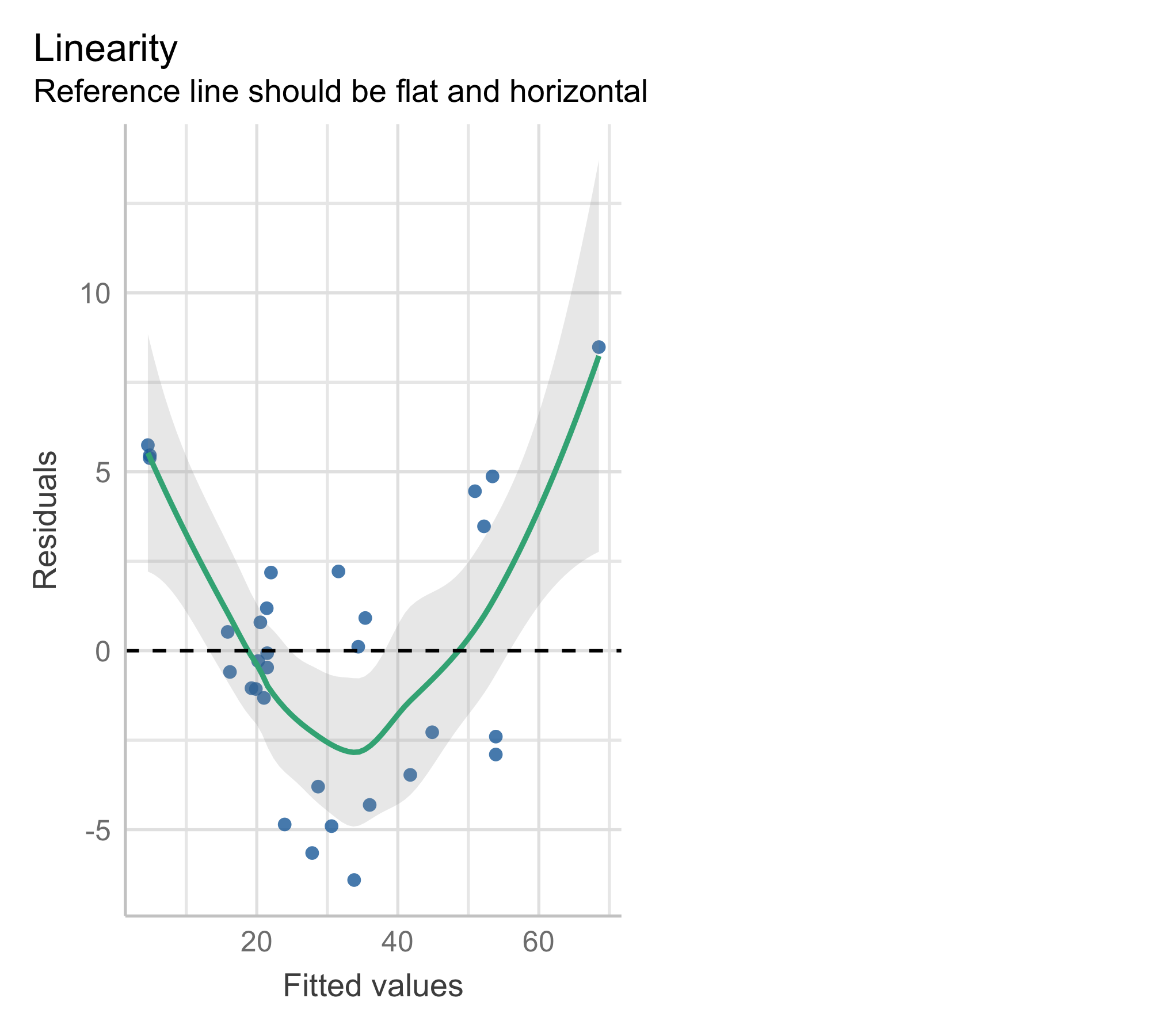 A systematic pattern in this plot may indicate violations of the linearity assumption