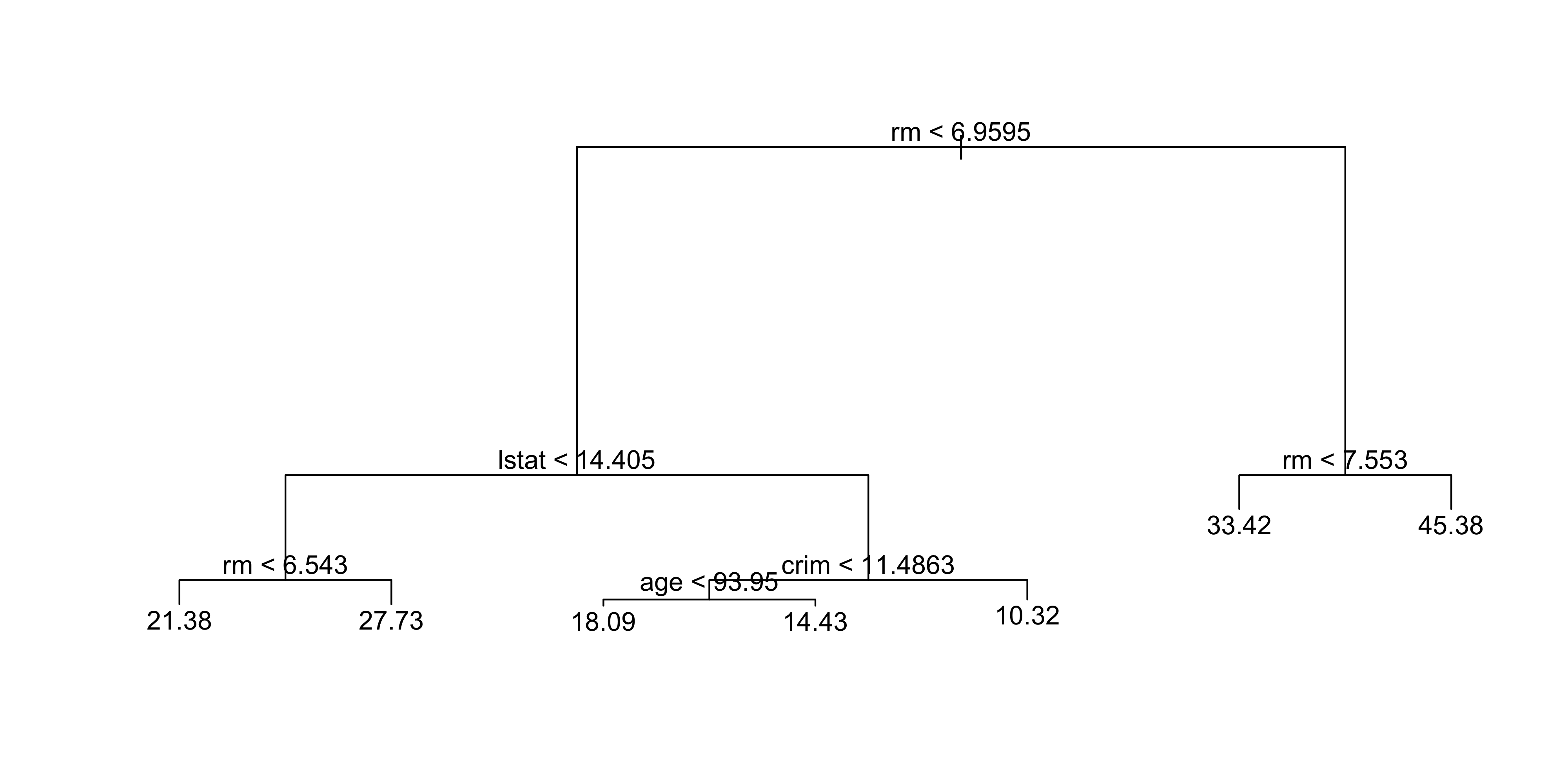 tree.boston <- tree(medv ~ ., Boston, subset = train)